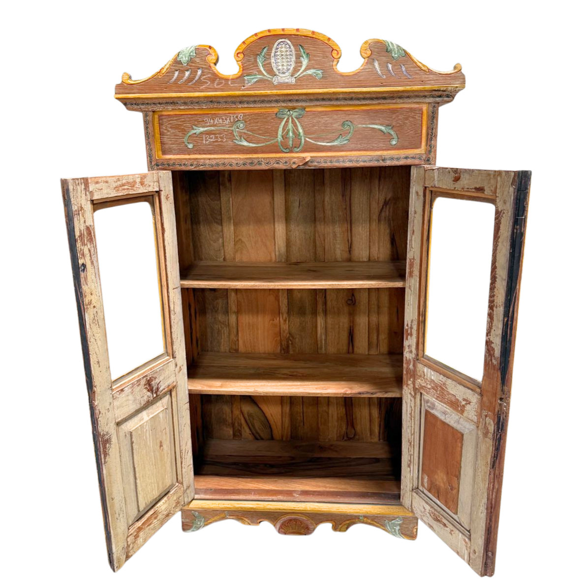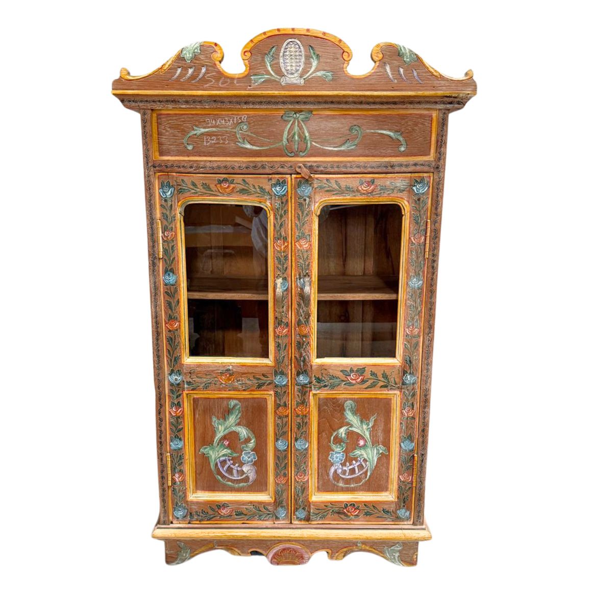 FUR651 Wooden Almirah Glass Doors Hand Painting (94w x 43d x 158h cms)
