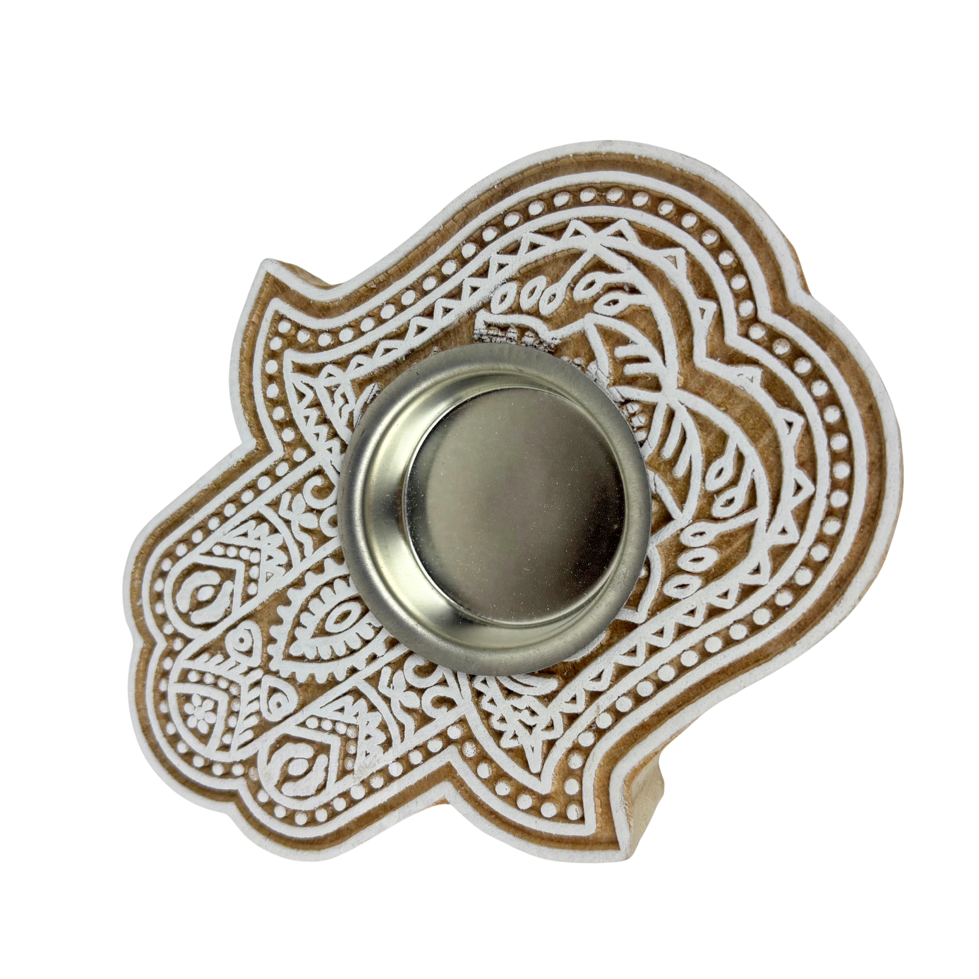 1GW Wooden Block T Light Candle Holder Hamza GW665
