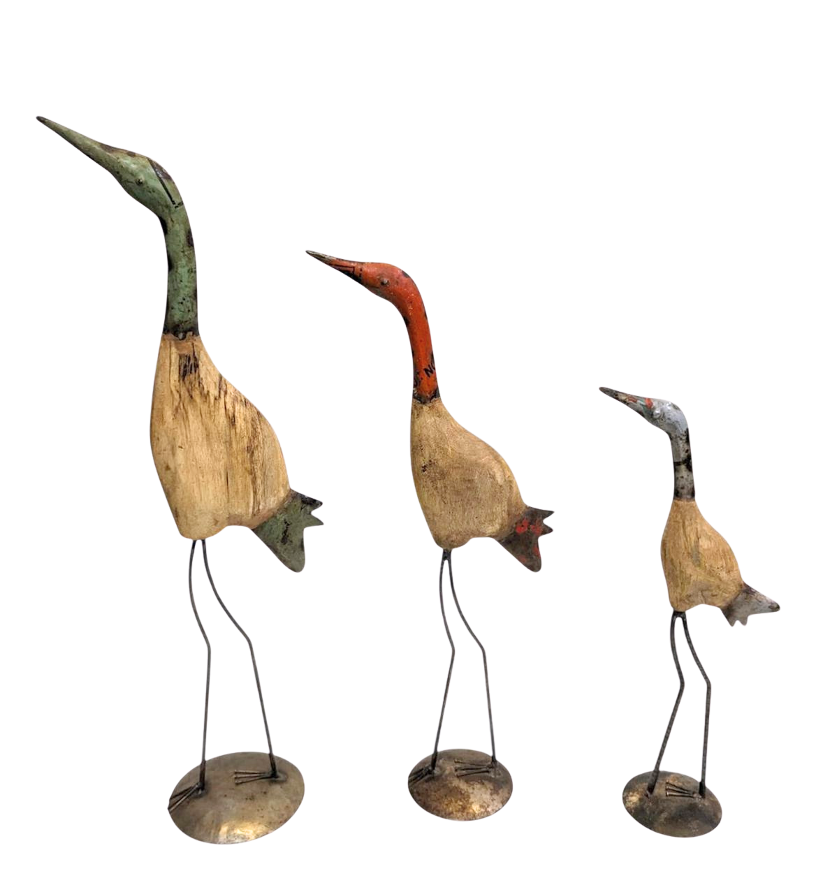 UNC069 Wood and Metal Storks Family of Three Hand Painted