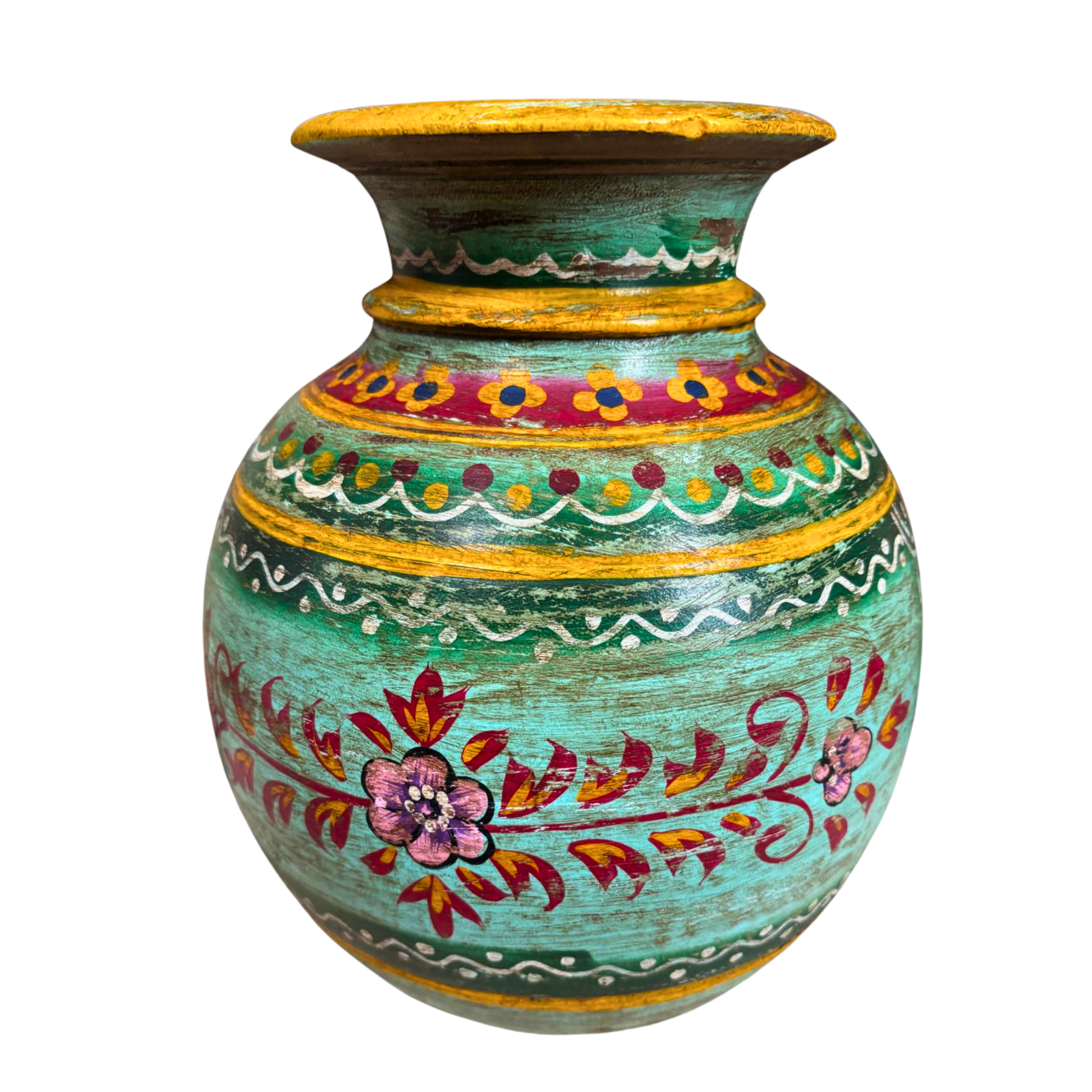 UNC062 Hand Painted Wooden Ghee Pot 30 x 30 x 35cms