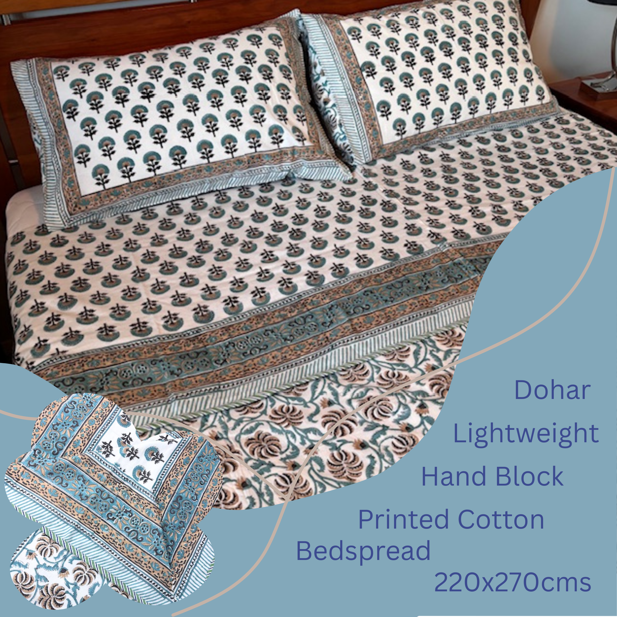 5HW Dohar Hand Block Printed Cotton Bedspread 220x270cms HW636